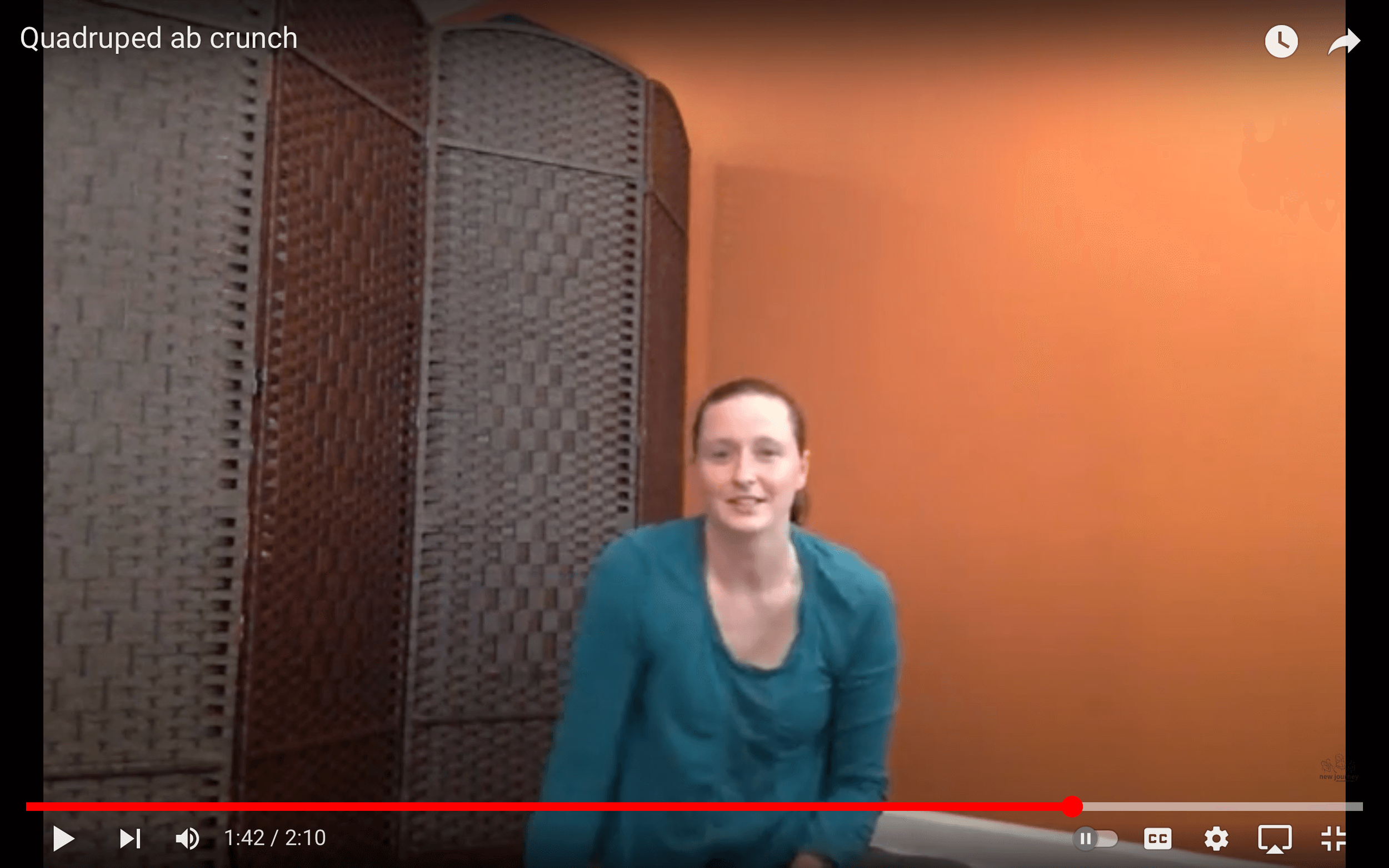 The first is essentially a crunch but performed face down. It is a wonderful exercise for after 6 weeks postpartum to reeducate the abdominal muscles to contract in a healthy pattern. It is also exhausting for those with a strong coordinated abdominal wall. At the top of the motion you should have a strong abdominal contraction that burns. The abdominal muscles should be the driving force, and if performed well the gluts should stay relaxed. This exercise can help to break the common postpartum pattern of glut clenching. Check out the video and let me know what you think